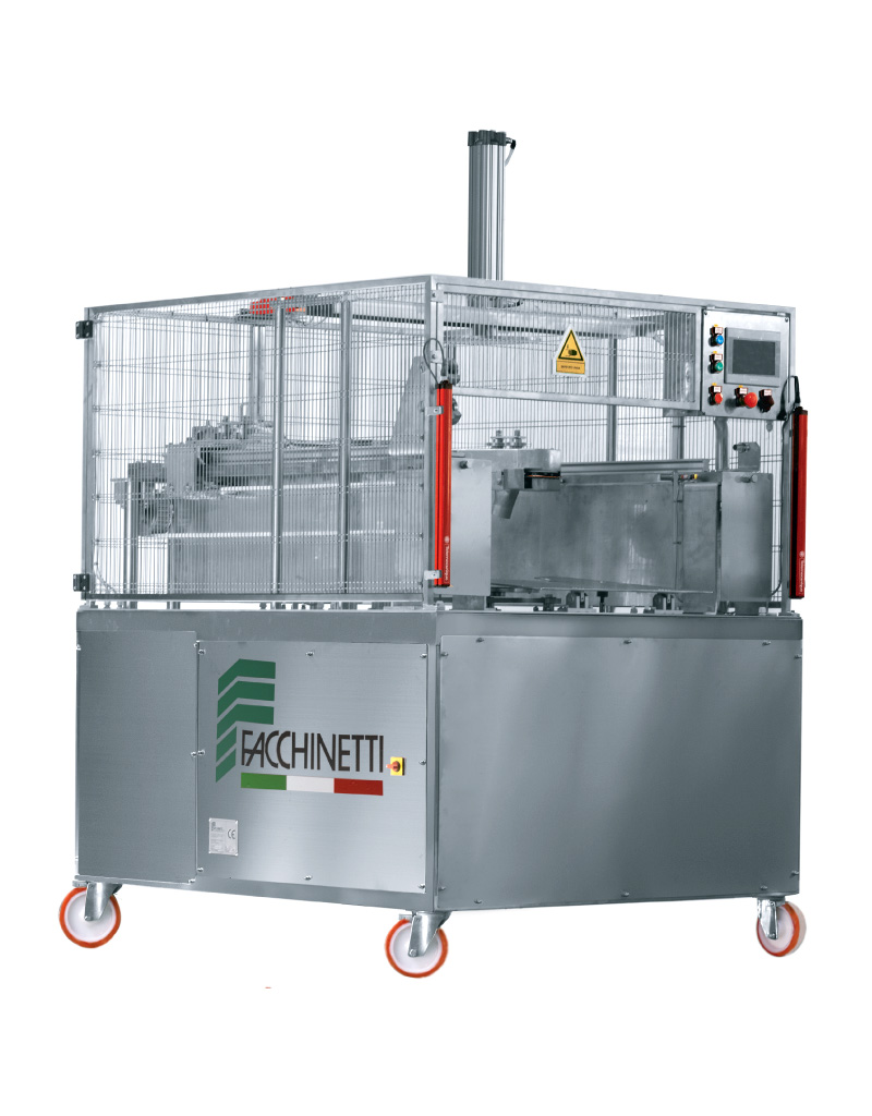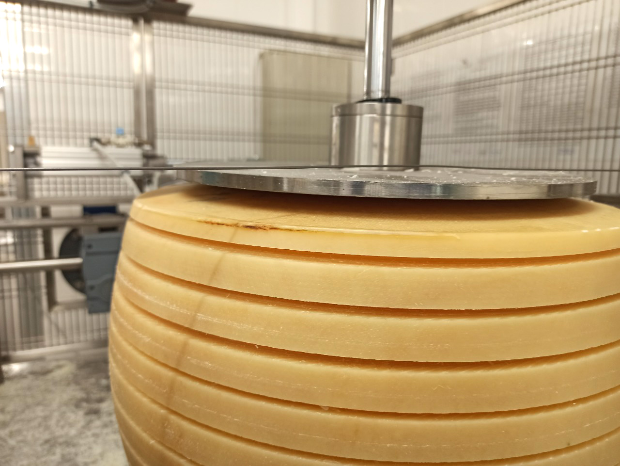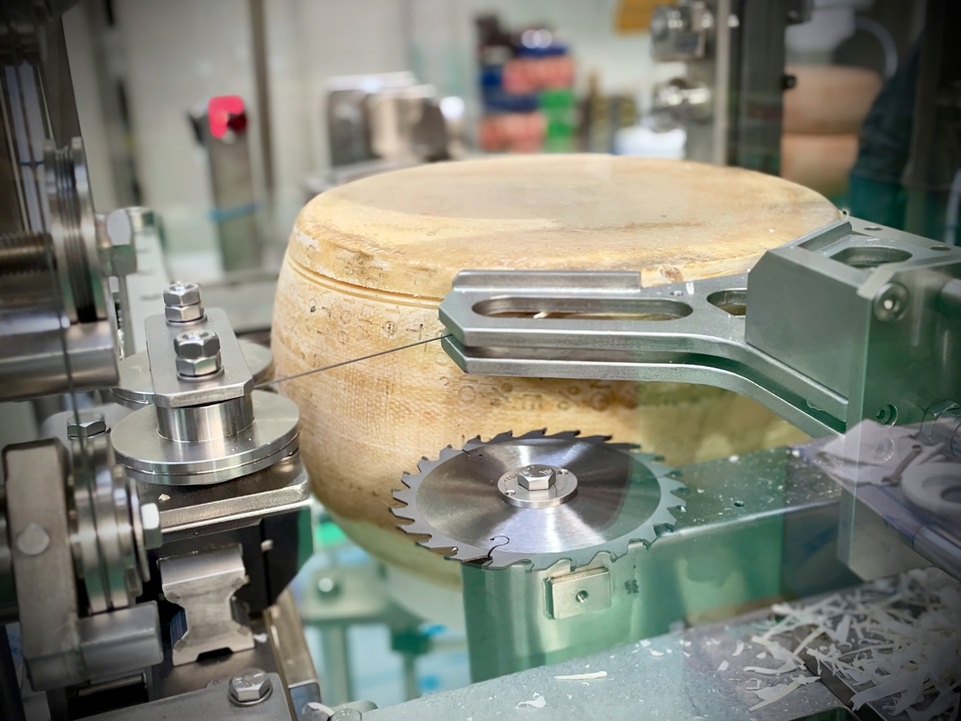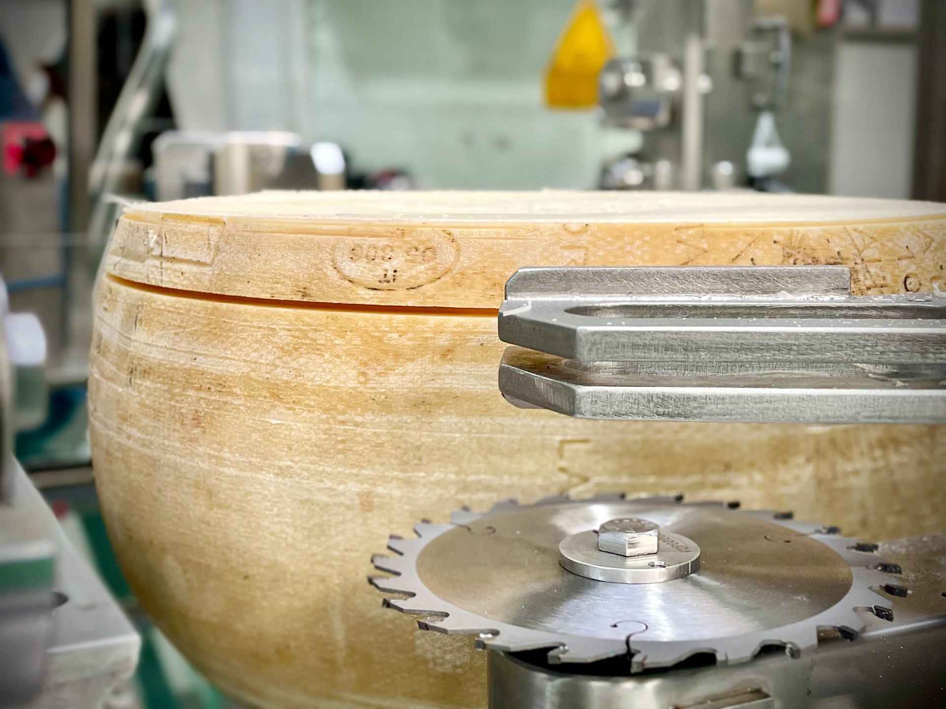 démoCette machine compacte permet de diviser une meule de fromage en tranches. Adaptée à des fromages à croûte dure (ex : parmesan) une pré découpe de la tranche est effectuée à l’aide d’une lame rotative avant la découpe des dalles au fil. Le positionnement de la meule se fait automatiquement en fonction de l’épaisseur de la dalle souhaitée. Il est possible de gérer différemment les tranches supérieures et inférieures.