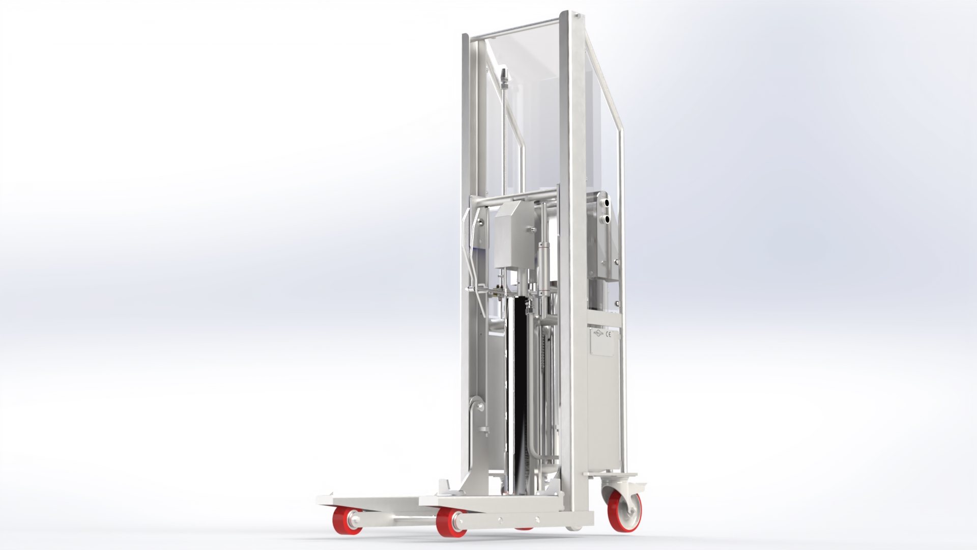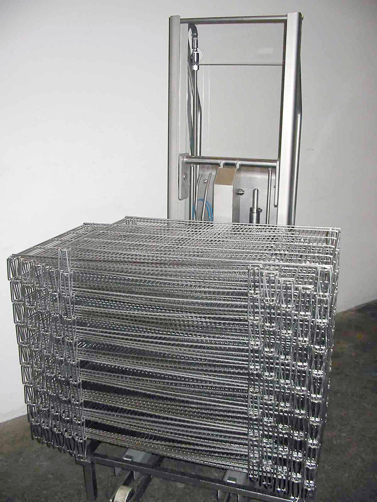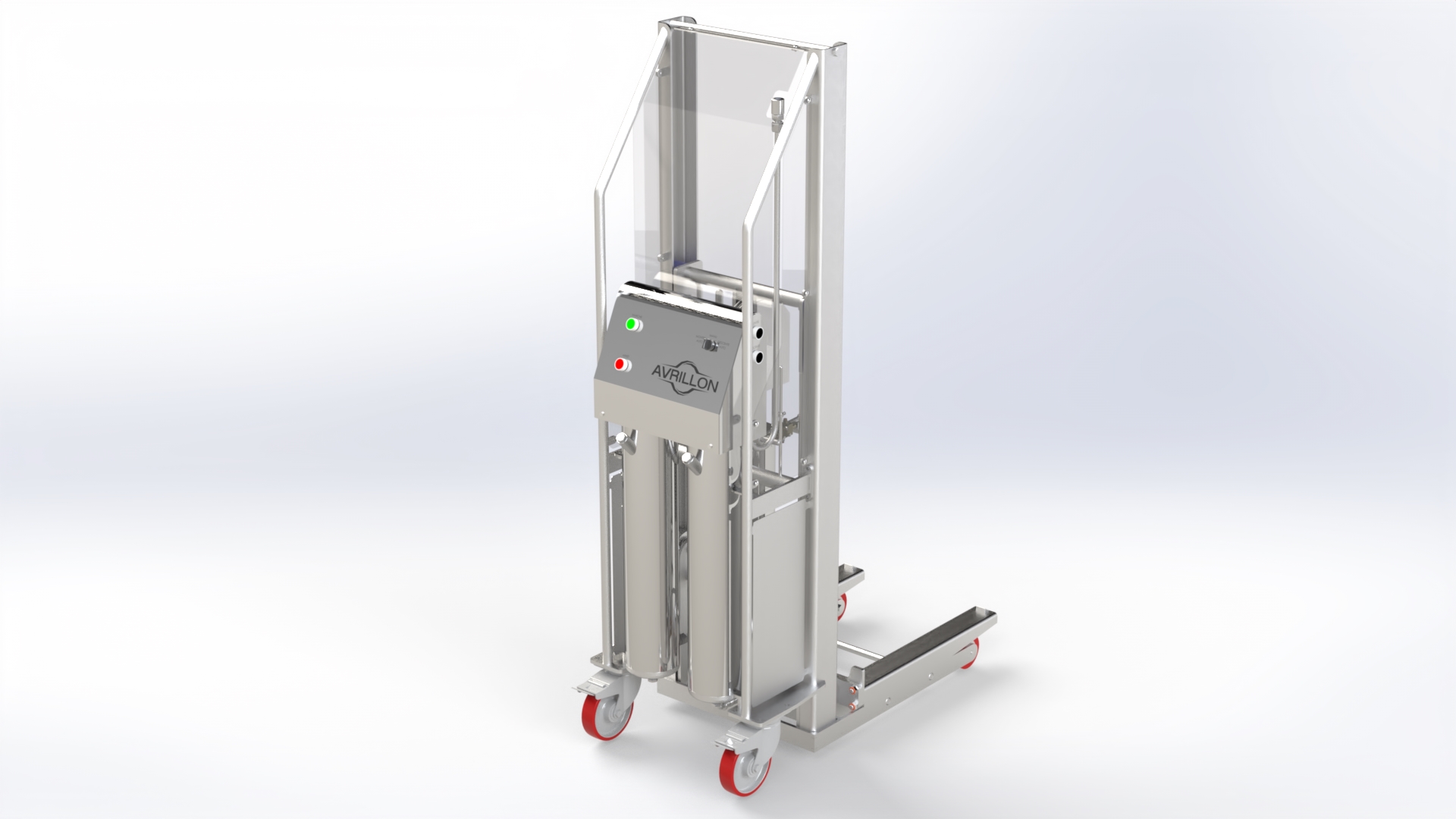 Mise à niveau pour piles de claies, cagettes ou palette. L’ENA permet de travailler de manière plus ergonomique à hauteur d’homme pour limiter les troubles musculo squelettiques (TMS). Cette machine conçue pour le travail en fromagerie est en acier inoxydable. Elle est alimentée uniquement avec de l’air comprimé ce qui lui permet de travailler dans des environnements difficiles (humidité, proche d’une saleuse...). Montée sur roues l’ENA pourra passer d’un poste de travail à l’autre en fonction des besoins (retourne en cave, alimentation emballage...).