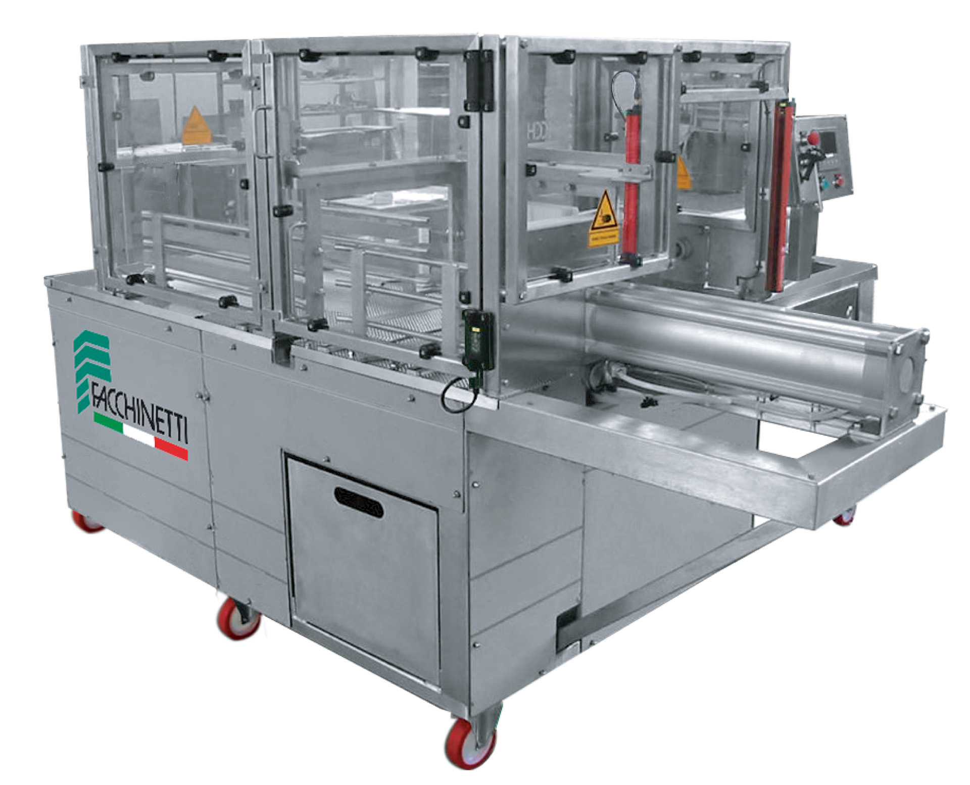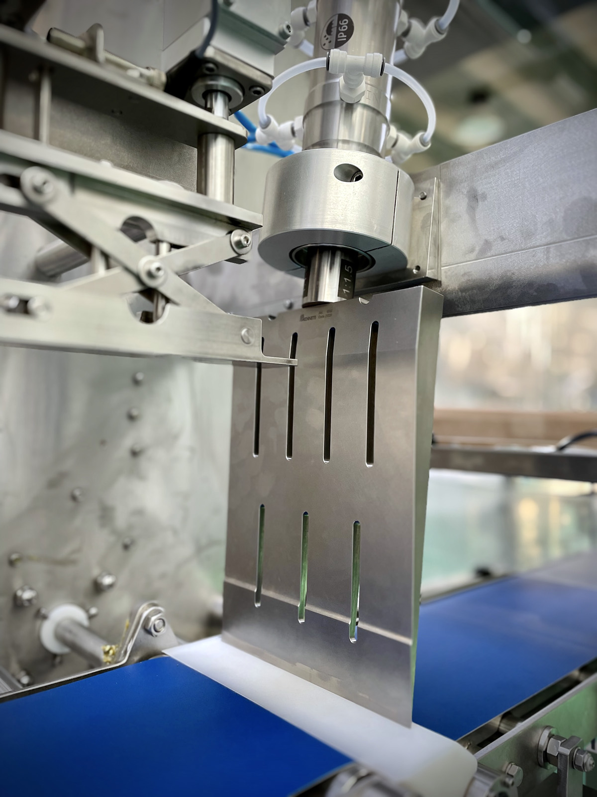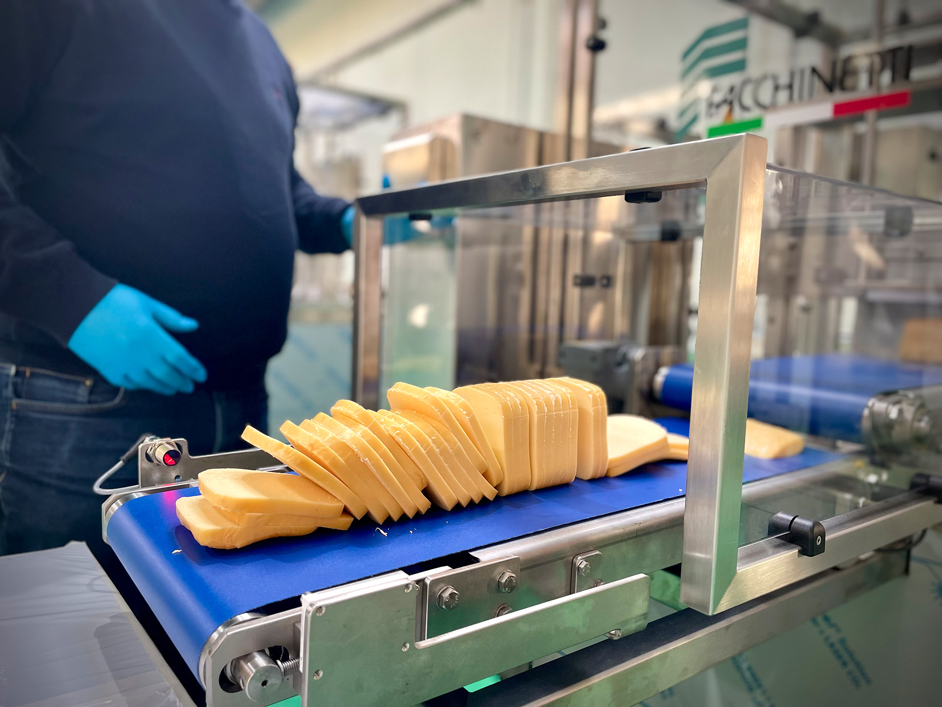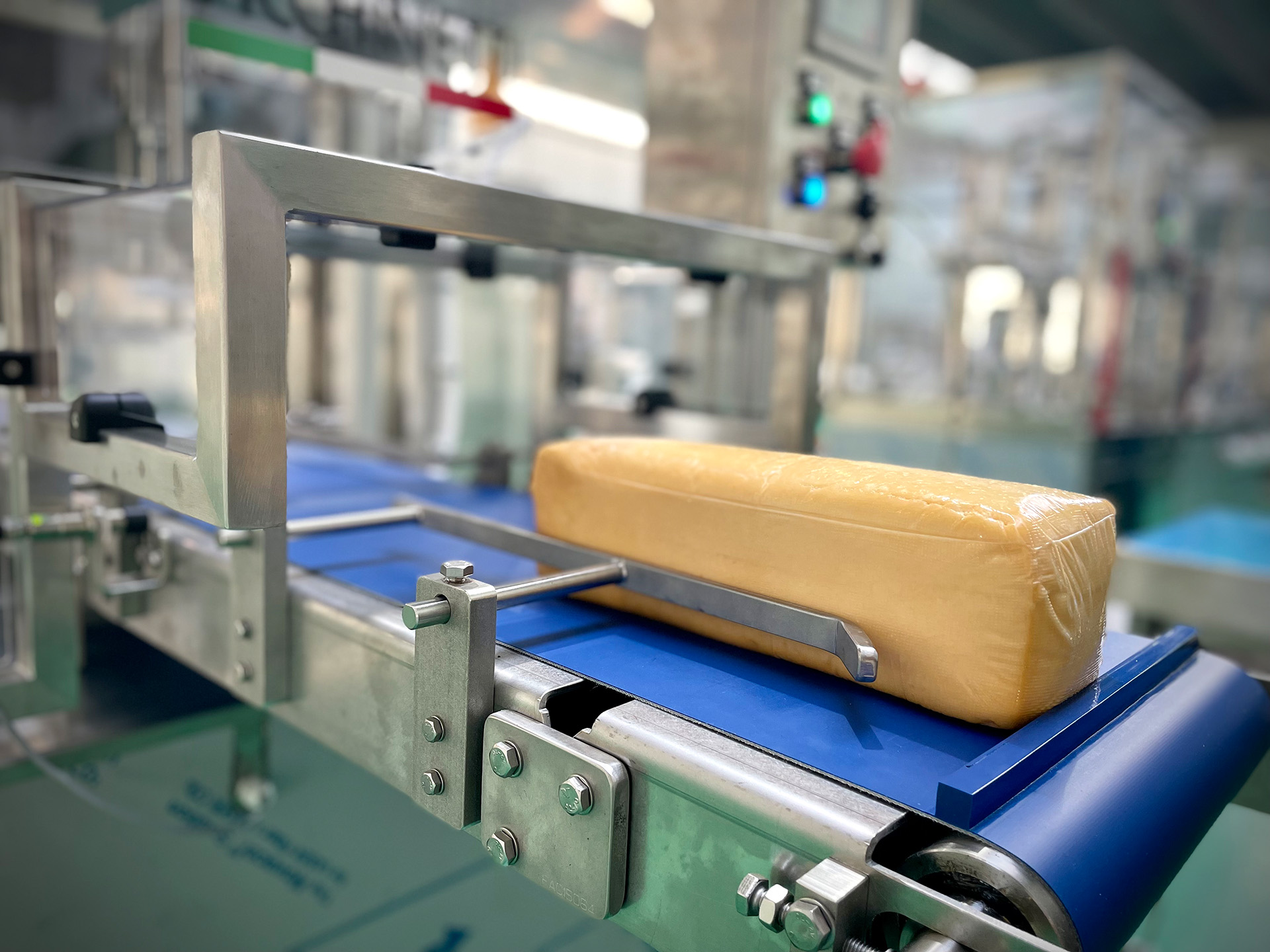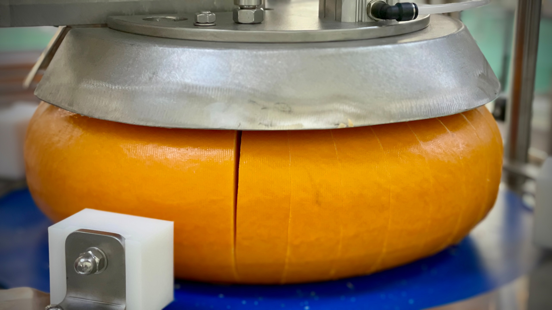 Entièrement automatisée cette machine permet de découper des blocs (longes) de fromages en slices selon des programmes de découpe prédéfinis. La machine est équipée de 3 postes en ligne pour ajuster au mieux la coupe : une balance, un calculateur de longueur de bloc et un scanner 3D pour en définir les contours. A la suite de ces 3 postes, le bloc est découpé avant de sortir de la machine.