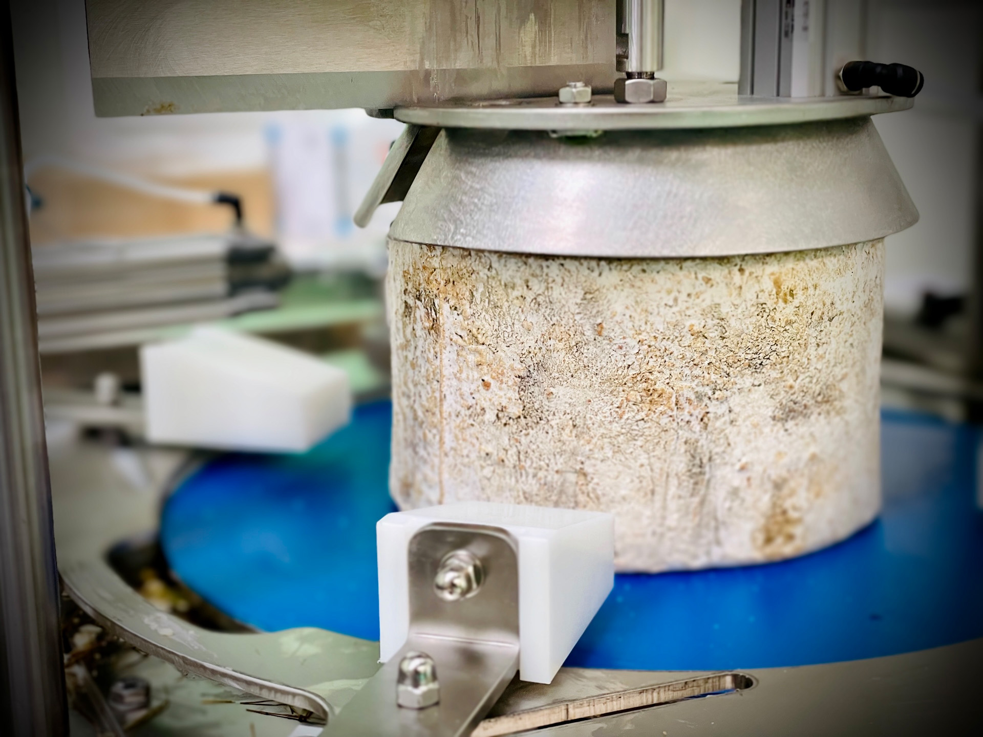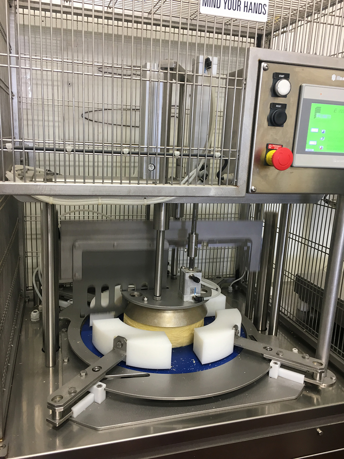 paramétrage entré par l’opérateur. Le fromage est déposé sur le tapis d’entrée, il passe sur le poste de carottage