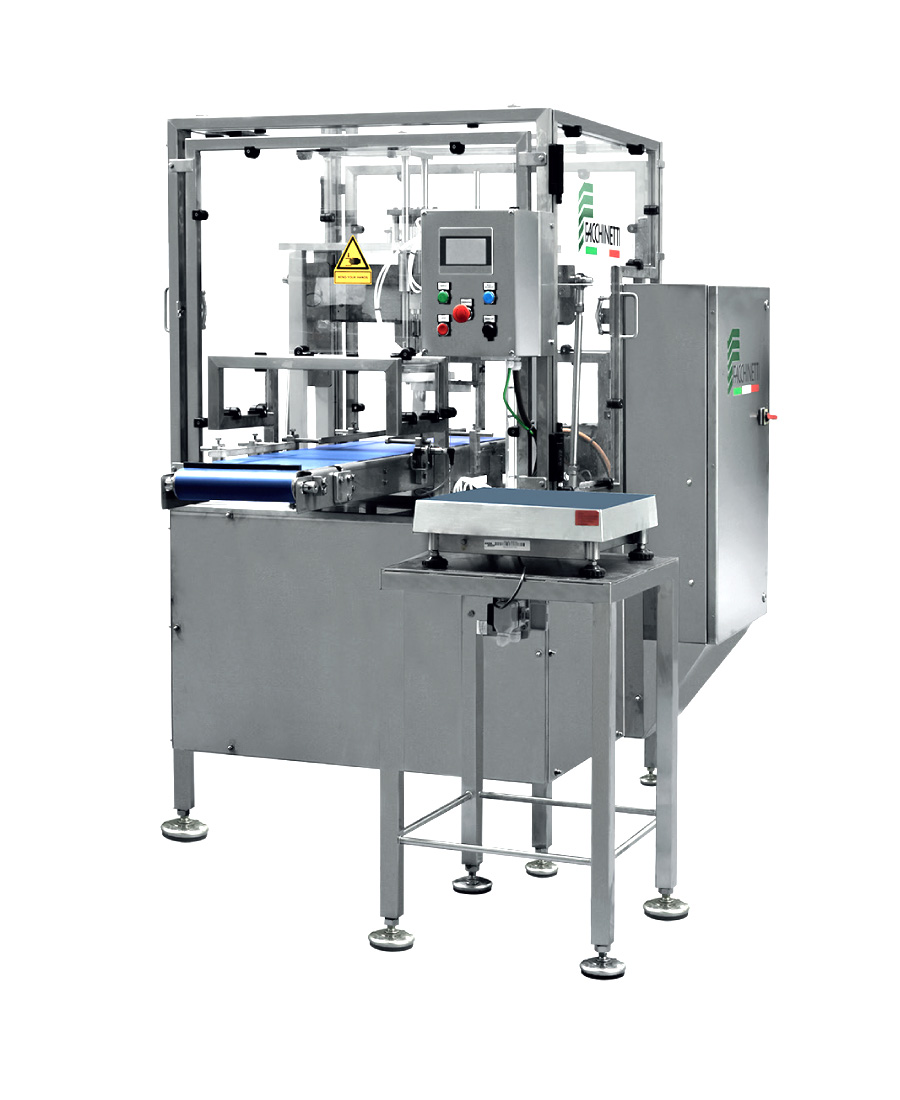 La machine est équipée d’une balance intégrée. Les postes sont alimentés manuellement.
